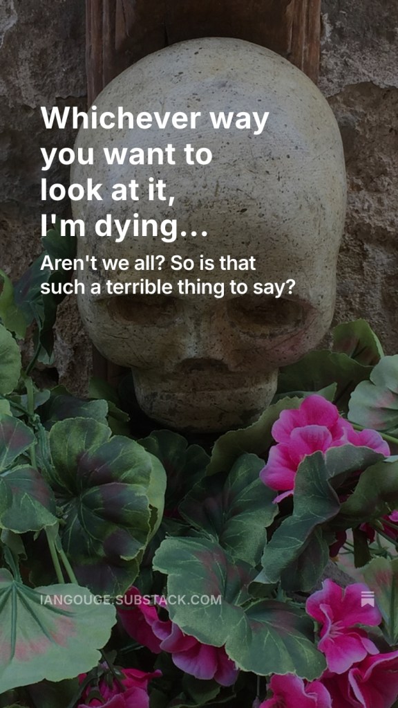 Some of May’s Substack posts Ian Gouge Blog, Books, Fiction, Life, Literature, Poetry, Short Stories, Uncategorized, Writing May 31, 2025 1 Minute “when you see anything of mine that you don’t like remember that I’m sincere in doing it and that I’m working toward something.” – Ernest Hemingway A selection of recent posts from my Substack site. “Writing until the light goes out” “Writing until the light goes out” Buy discounted books direct from the printer If you liked this content, please share it! Click to share on WhatsApp (Opens in new window) WhatsApp Click to share on Facebook (Opens in new window) Facebook Click to share on X (Opens in new window) X Click to share on Reddit (Opens in new window) Reddit Click to share on LinkedIn (Opens in new window) LinkedIn Click to share on Pinterest (Opens in new window) Pinterest Click to share on Tumblr (Opens in new window) Tumblr Like Loading... Published May 31, 2025
